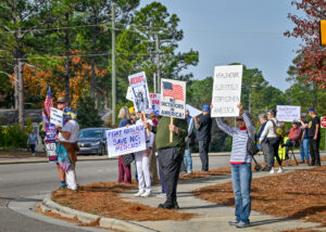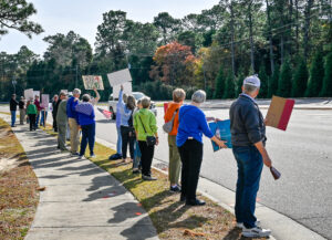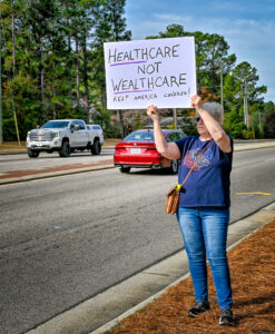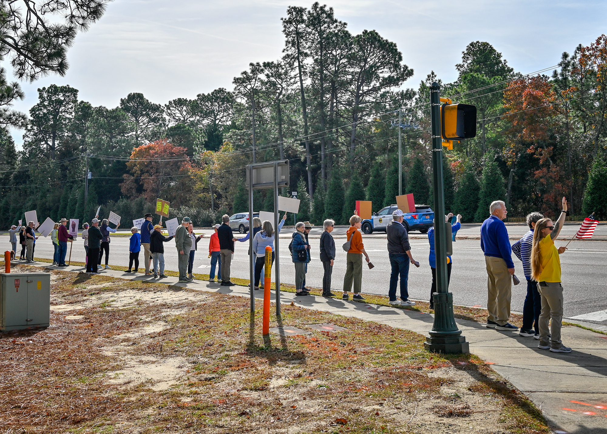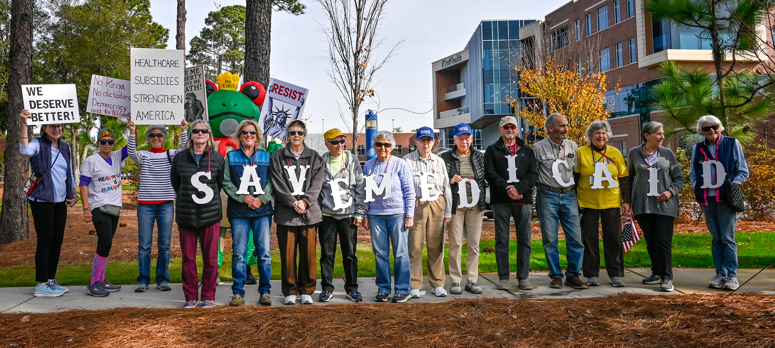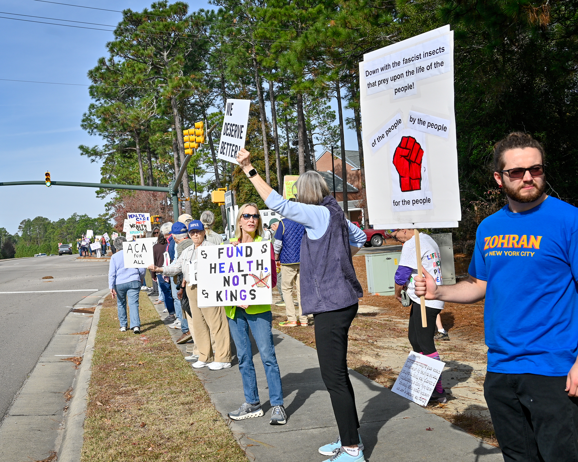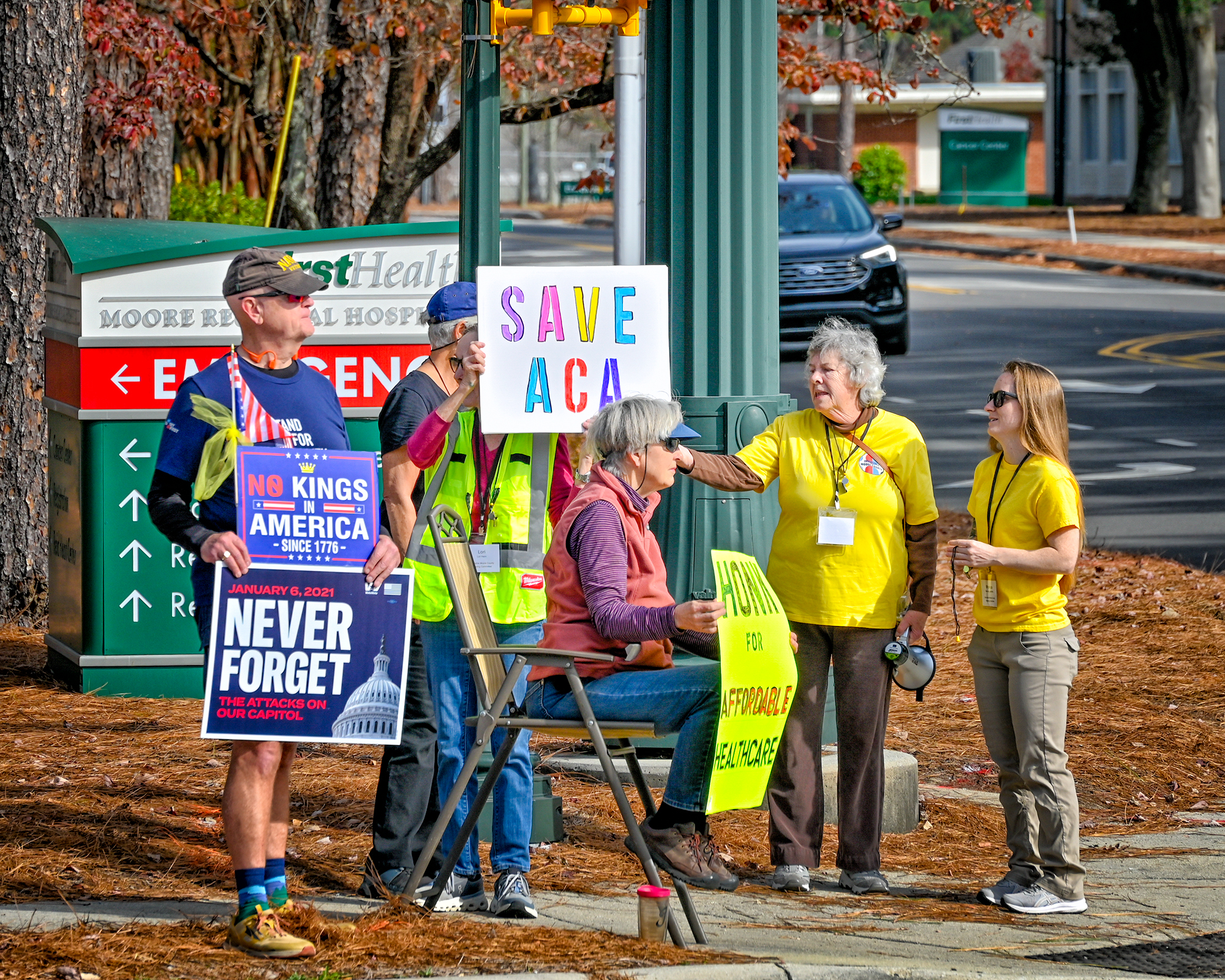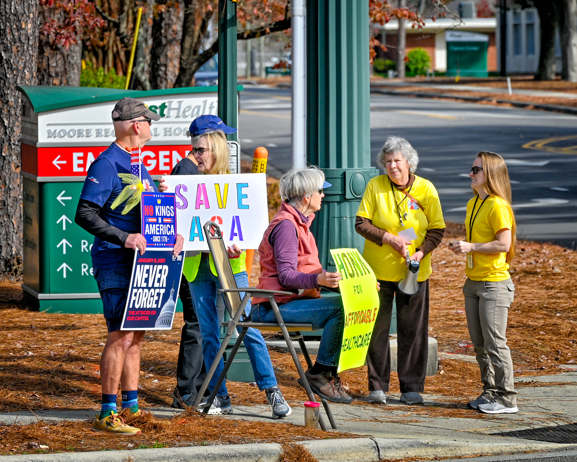 In November 2025, about 50 Moore County residents gathered on Highway 211 (Yadkin Rd) near the Moore Regional Hospital with signs, cowbells, and chants to show their support for funding important programs like Medicaid.
